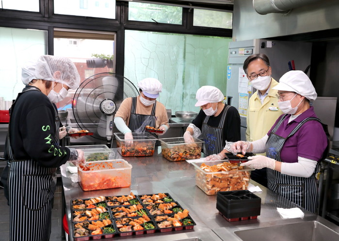 유성훈 서울 금천구청장이 최근 ‘동(洞)에 번쩍 골목구청장’ 민생행보에 나서 가산동, 시흥1동, 독산3동을 찾아 직원격려 및 민원응대, 주요 사업 현장 방문 등 지역 민생현안들을 살폈다. 사진은 유 구청장(오른쪽 두 번째)이 시흥1동 지역 자활센터를 방문해 직원을 격려하고 이야기를 나누고 있는 모습. (사진제공=금천구청)