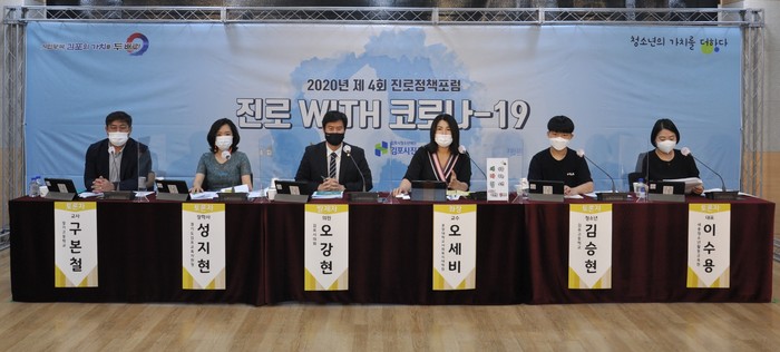 경기 김포시 청소년육성재단 진로체험지원센터가 최근 각 분야 전문가 9명이 참여한 가운데 코로나 시대 변화돼야 할 시의 진로정책 및 제언을 위한 '제4회 2020년 진로정책포럼'을 비대면으로 개최했다. 사진은 이날 코로나19와 공존하는 청소년 진로정책에 대해 이야기하고 있는 패널들의 모습. (사진제공=김포시청)