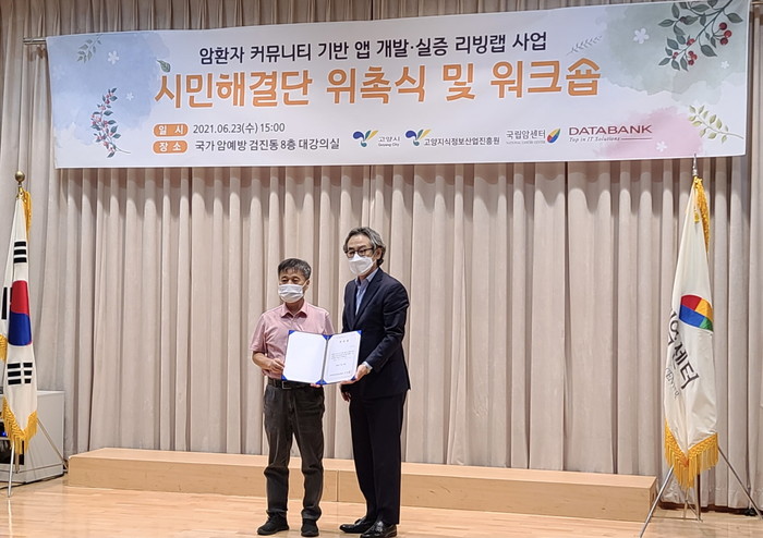 이날 행사에는 국립암센터 서홍관 원장, 진흥원 오창희 원장, 수행기업(주, 데이타뱅크시스템즈), 동국대학교 김민수 교수, 시민해결단이 참석하였다.