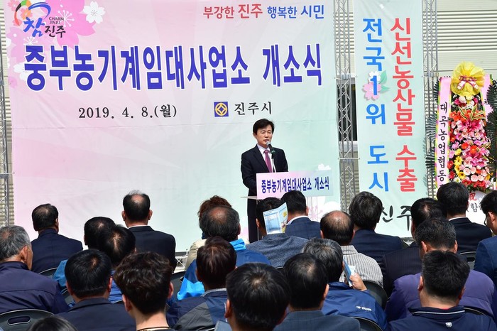 진주시는 2019년 4월 중부 농기계 임대사업소를 개소한 데 이어, 문산읍 두산리 일원의 진주시 농업기술센터 내 남부 농기계 임대사업소를 지난 해 12월에 개소하여 본격적인 운영에 들어갔다.