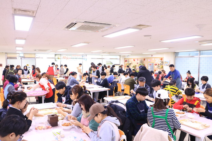 경기 동두천시 종합자원봉사센터는 최근 가족봉사단과 자원봉사단체 등 80여명이 참여한 가운데 지역내 소외계층을 위한 설맞이 만두와 전 만들기 행사를 개최했다. 이날 만들어진 음식은 100가구에 전달됐다. 사진은 만두를 빚고 있는 모습. (사진제공=동두천시청)