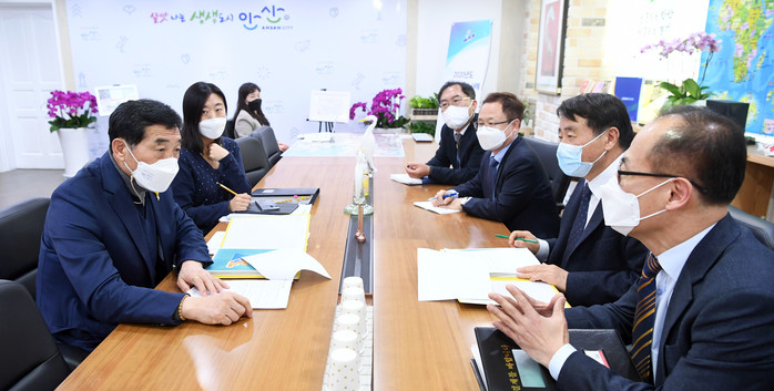 경기 안산시 시민옴부즈만은 최근 윤화섭 시장과 시의회에 2020년 옴부즈만에서 처리한 고충민원 및 운영상황을 보고했다. 지난해 7월부터 운영에 나선 옴부즈만은 시민들부터 접수된 고충민원 23건을 접수·처리했다. 사진은 이날 윤 시장(왼쪽)이 보고를 받고 있는 모습. (사진제공=안산시청)