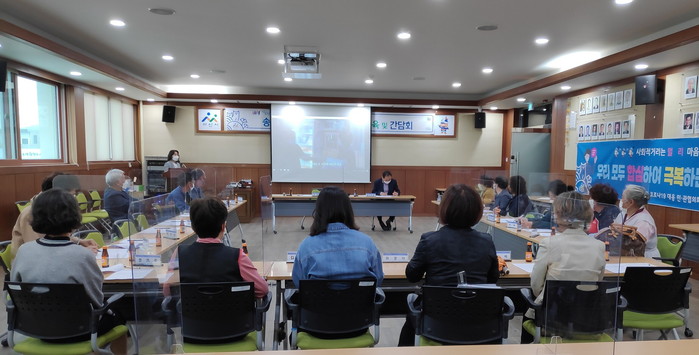 충남 아산시 송악면행정복지센터가 최근 복지 위기가구를 적극 발굴하고 지원하기 위해 인적안전망인 복지이장과 명예사회복지공무원을 대상으로 인적안전망의 역할, 구체적 사례 등에 관련된 동영상을 시청하며 복지의 필요성을 알리는 교육을 했다. 사진은 이날 교육이 진행되고 있는 모습. (사진제공=아산시청)