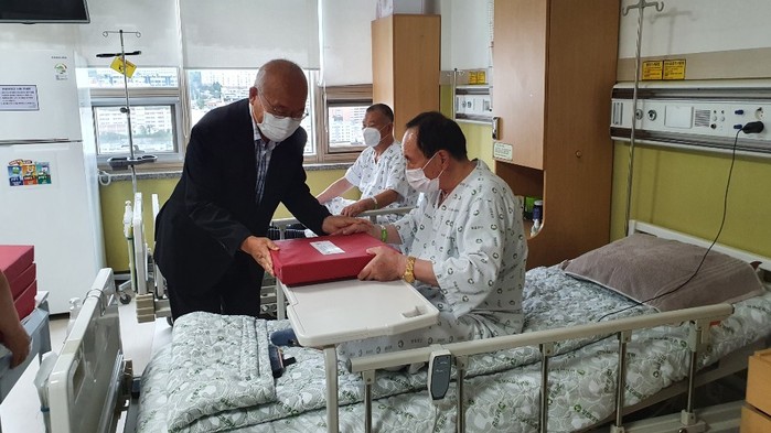 부산지방보훈청(청장 권율정)은 추석을 맞이하여 23일 부산보훈병원을 방문해 입원중인 국가유공자 분들께 국가보훈처장 명의 위문품을 전달하며 국가를 위한 희생과 공헌에 감사의 뜻을 전하고 조속한 쾌유를 기원하였다.