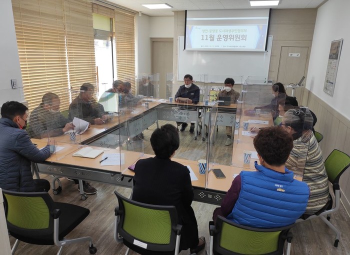경기 동두천시 생연·중앙동 도시재생 주민협의체에서는 5일 11월 운영위원회를 열고 지속가능한 도시재생과 관련한 주민참여 방안 등을 논의했다. 사진은 이날 회의가 진행되고 있는 모습. (사진제공=동두천시청)