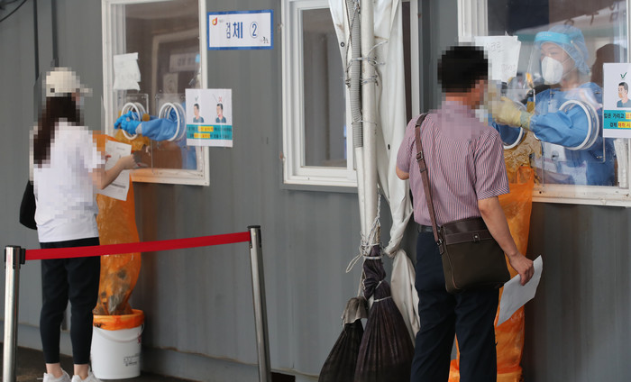 지난 28일 오전 서울 중구 서울역에 설치된 임시선별검사소에서 시민들이 코로나19 검사를 받고 있다. 이날 보건 당국이 발표한 코로나19 신규 확진은 1793명으로 53일째 네 자릿수 확진자를 기록하고 있다.