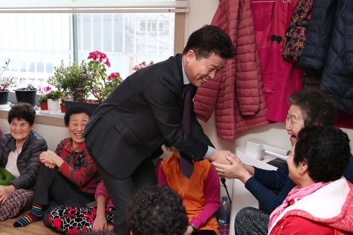허인환 인천 동구청장은 8일부터 화평동 경로당을 시작으로 지역내 36개 경로당을 방문해 노인들에게 안부인사를 전하며 훈훈한 명절 분위기 조성에 나섰다. 사진은 화평동 경로당에 방문한 허 구청장이 노인들과 반갑게 인사를 하는 모습. (사진제공=동구청)