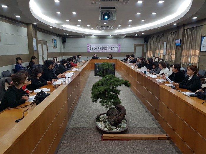 (사)경기도여성단체협의회 동두천시지회는 지난 7일 동두천시청 상황실에서 '2020년 정기총회'를 개최했다. 이날 회의에서는 지난해 14개 단체 회원들이 활동했던 폭력예방 캠페인, 지역경제 활성화를 위한 전통시장 장보기, 양성평등 기념식, 여성리더 함양을 위한 워크숍 등 사업실적과 회계 결산보고 및 2020년 사업계획을 협의했다. 사진은 참여자들이 회의하는 모습. (사진제공=동두천시청)