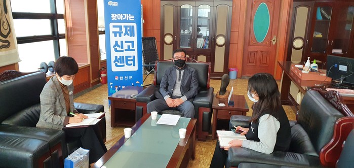 합천군(군수 문준희)은 군민 중심, 현장밀착형 규제 발굴을 위해 지난 3월 16일부터 31일까지 농공단지, 합천시장 등 민생분야 산업 현장 위주로 ‘찾아가는 규제신고센터’를 집중 운영했다.