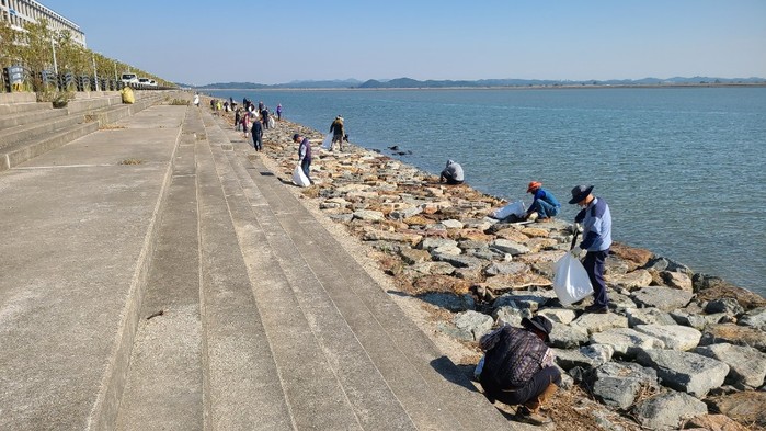 경기 안산시 단원구는 최근 시화호수로 자전거도로 주변 MTV 경관녹지 및 해안가(호안) 6km 구간에서 대대적인 환경정화 작업을 실시했다. 사진은 MTV 경관녹지 및 해안가에서 쓰레기를 치우고 있는 모습. (사진제공=안산시청)