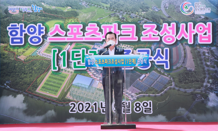 이날 준공식을 가진 함양스포츠파크 조성사업(1단계)은 지난 2015년 문화체육관광부 생활체육시설 설치지원사업에 선정되어 국비 58억원과 도비 2억원, 군비 89억원 등 총사업비 149억원을 확보해, 대지면적 21만480㎡ 에 축구장 3면, 족구장, 주차장 등으로 조성되었다.