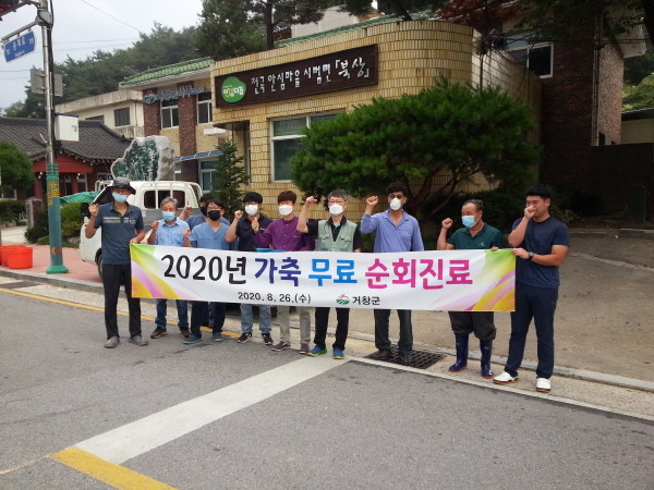 (사)대한수의사회 경남지회 거창군분회(회장 장진만)와 거창군은 26일 북상면에서 하절기 폭염과 코로나19로 어려움을 겪고 있는 영세·고령 가축사육농가 등을 대상으로 가축 무료 순회 진료를 실시했다.