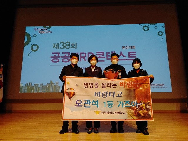 | ▲ ‘제38회 공공HRD콘테스트’에서 강의분야 국가공무원 인재개발원장상을 수상한 오관석 광주소방학교 소방위(오른쪽에서 두번째) / 광주광역시 제공 |