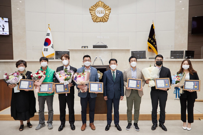 이번 시상은 코로나19 확산 방지를 위해 ‘제25회 용인시민의 날’ 기념식이 간소하게 치러진 데에 따라 시의회 차원에서 본회의장 내 참석인원을 최소화하는 등 사회적 거리두기 예방수칙을 준수한 가운데 치러졌다.