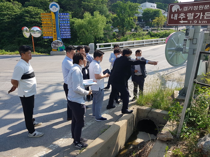 경기 양평군은 기재부의 제5차 국도·국지도 건설 5개년계획 일괄예비타당성조사와 관련해 지난 29일 예타 시행기관인 한국개발연구원(KDI)에서 양평군 대상사업에 대해 현장조사를 실시했다. 사진은 참여자들이 현장을 살펴보는 모습. (사진제공=양평군청)