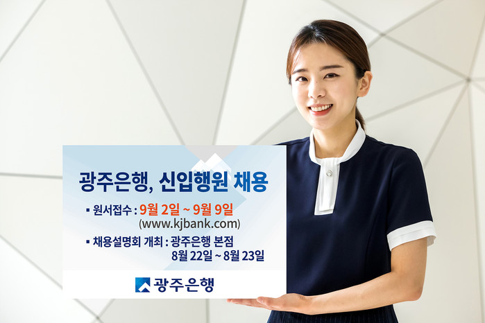 [시민일보 = 고수현 기자] JB금융그룹의 계열사 광주은행(은행장 송종욱)이 오는 9월2~9일 원서접수를 시작으로 하반기 정규직 신입행원 50여명을 선발한다.