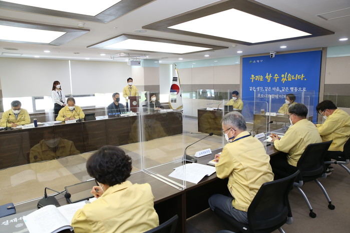 은평구는 3일 확대간부회의를 진행했으며, 갈현2동·역촌동 주민자치회장이 참석해 ‘주민세환원사업 우수동’이라는 주제로 동별 현안을 다뤘다. 사진은 이날 확대간부회의에서 참석자들이 의견을 나누고 있는 모습. (사진제공=은평구청)