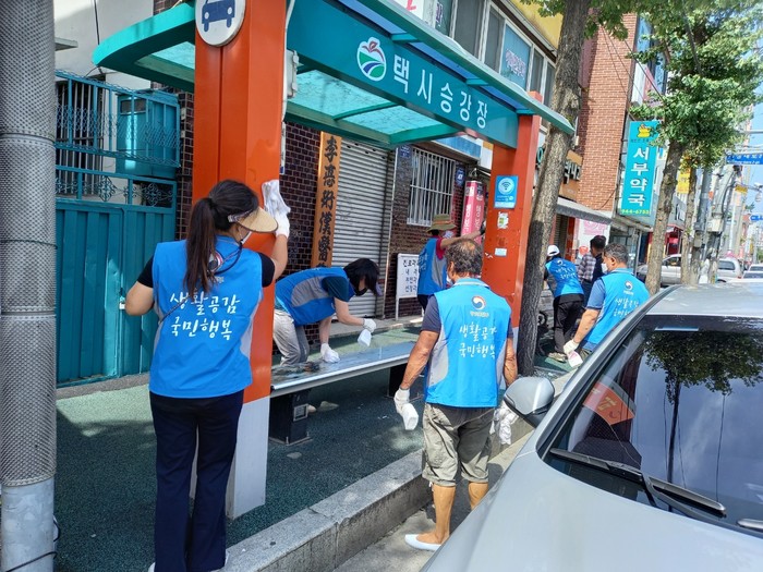 이날 방역 봉사활동은 단원 8명 모두가 참여해 조를 나누어 시외버스터미널, 서흥여객버스터미널, 택시 및 시내버스 승강장, 군청 앞 로터리 문화휴식 공간, 그린씽 대여소 등 이용자가 많은 공공장소 시설물을 대상으로 소독 등 방역 활동을 실시했다.
