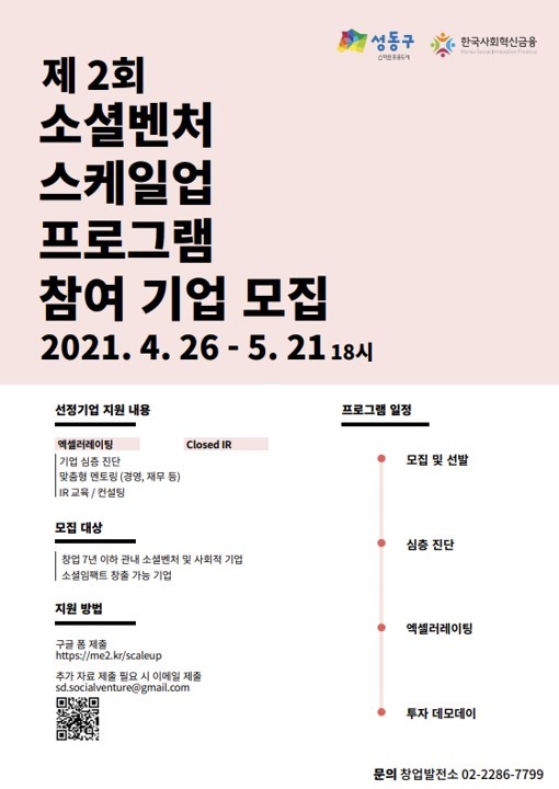 | ▲ 소셜벤처 스케일업 프로그램 참여기업 모집 안내문. (사진제공=성동구청) |