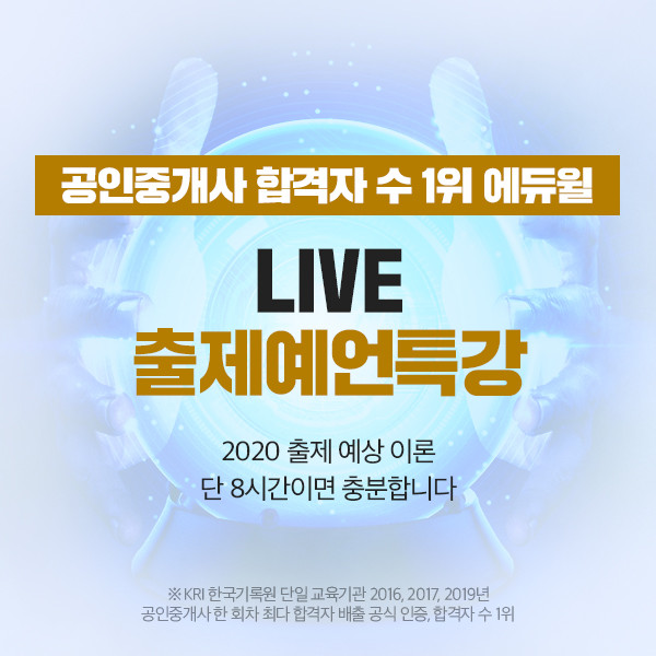 이에 종합교육기업 에듀윌(대표 박명규)은 단기간에 공인중개사 시험 학습을 완성할 수 있도록 ‘LIVE 출제예언특강’을 마련하고 수강생을 모집한다.