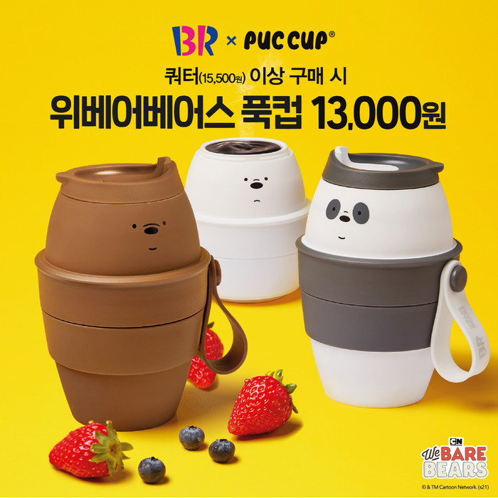[시민일보 = 이대우 기자] SPC그룹이 운영하는 배스킨라빈스가 24일부터 ‘위베어베어스 푹컵’ 프로모션을 실시한다고 23일 밝혔다. 배스킨라빈스가 한정 수량으로 선보이는 ‘위베어베어스 푹컵’은 텀블러 브랜드 ‘푹컵(PUCCUP)’과 애니메이션 ‘위베어베어스’와 협업해 탄생했다.