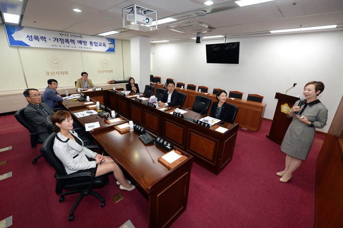 [오산=김정수 기자] 경기 오산시의회가 최근 제2회의실에서 의회 전직원과 의원들을 대상으로 성폭력·가정폭력 예방교육을 실시했다.
