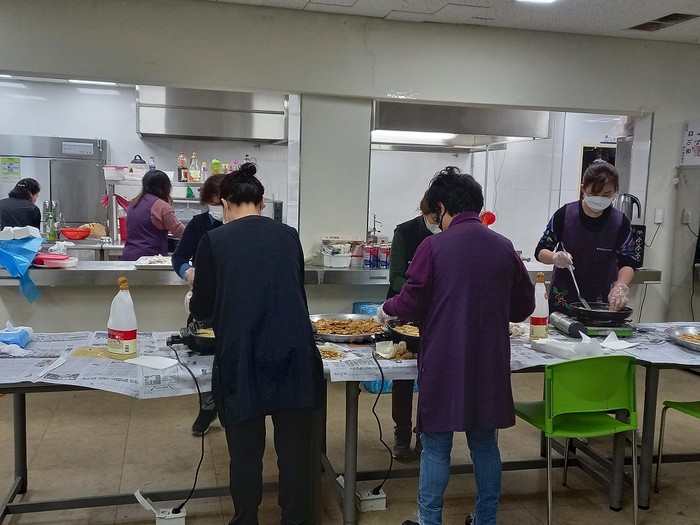 경기 여주시 흥천면 주민자치위원회는 지난 12일 '사랑의 밑반찬' 봉사활동을 진행해 정성 가득히 반찬을 만들어 위기에 처한 49가구에 전달했다. 사진은 이날 봉사자들이 모여 반찬을 만들고 있는 모습. (사진제공=여주시청)