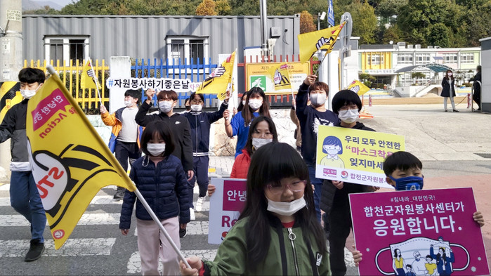 합천군자원봉사센터가 주관하고, 한국남동발전이 사회공헌사업의 일환으로 지원한 ‘노란발자국’은 어린이보행자를 위한 안전한 횡단 교육 및 시설물 설치를 통한 교통사고 예방을 목적으로 진행됐다.