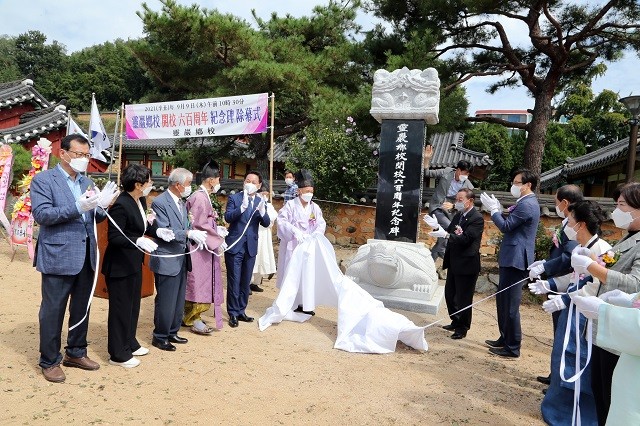 [영암=정찬남 기자] 전남 영암향교는 9일 향교 교정에서 민족 교육의 장으로서 유구한 역사를 기념하는 영암향교 개교 600주년 기념비 제막식을 가졌다.
