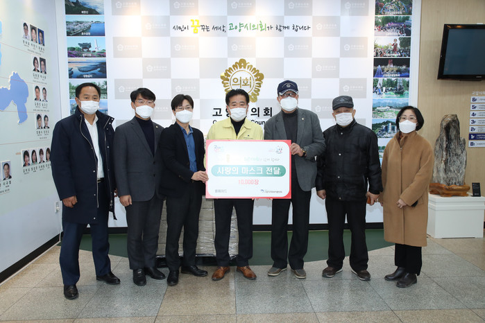 행사에 참석한 이길용 의장은 “코로나19로 어려운 여건에도 불구하고 나눔을 실천해주신 따뜻한 마음에 감사드린다”며 “코로나19가 종식되는 날까지 의회 차원의 지원을 아끼지 않겠다”고 했으며, 마스크를 전달받은 이묘상 고양시 보훈단체연합회 회장은 “마스크를 필요로 하는 회원에게 잘 전달하도록 하겠다”고 감사의 마음을 전했다.