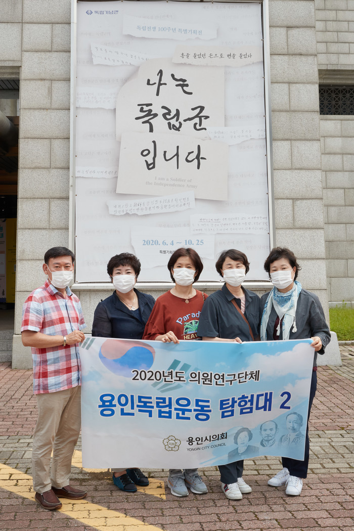 한편, 「용인독립운동 탐험대 2」는 유진선, 장정순, 남홍숙, 이은경, 황재욱, 명지선 의원(6명)으로 구성됐으며, 작년에 활동했던 「용인독립만세운동 100주년 탐험대」 활동에 이어 올해는 (가칭)용인항일독립기념관 공간 구성과 용인독립운동 역사 및 유적을 토대로 교육·문화·관광콘텐츠를 발굴하고 접목하는 방안을 연구하고 있다.
