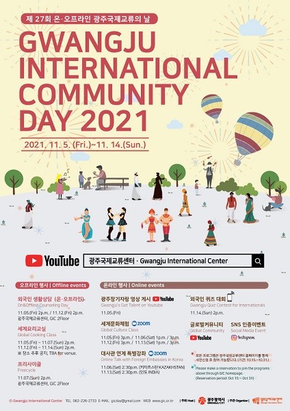 모든 프로그램은 광주국제교류센터 홈페이지에서 사전등록을 통해 무료로 참여할 수 있다. 자세한 내용은 광주국제교류센터로 문의하거나 광주국제교류센터 홈페이지에서 확인하면 된다.