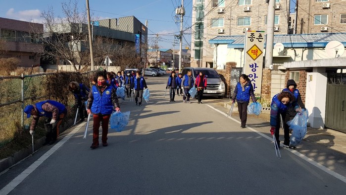 세종시 연서면바르게살기위원회가 12일 올해 첫 국토대청결운동을 전개했다. 이날 회원들은 설을 앞두고 지역내 봉암시가지, 주요 간선도로변, 하천 등에서 주민 계도활동과 함께 생활쓰레기 수거, 불법광고물 정비 등을 했다. 사진은 쓰레기 수거 모습. (사진제공=세종시청)