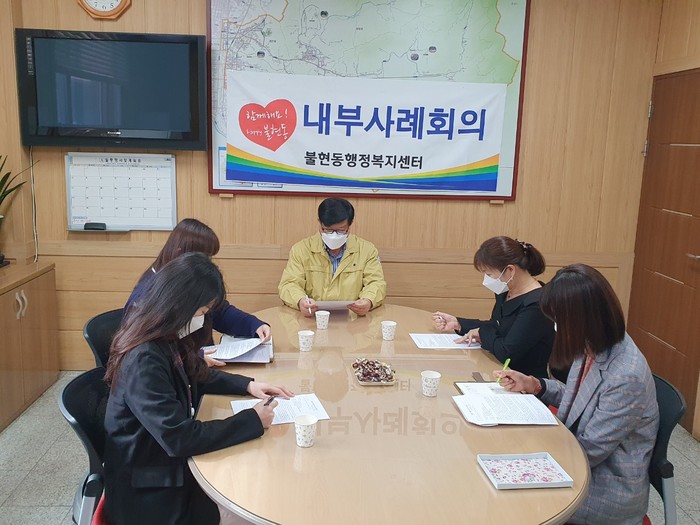 경기 동두천시 불현동행정복지센터가 최근 내부사례회의를 열어 생계·주거 등의 복합적인 어려움을 호소한 주민 2가구를 신규 사례관리 대상자로 선정하고, 다양한 복지욕구에 대한 해결방안을 논의했다. 사진은 이날 회의가 진행되고 있는 모습. (사진제공=동두천시청)