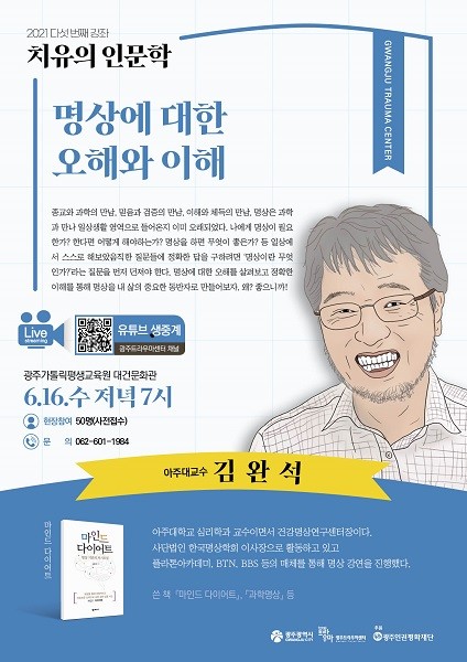 이번 강연은 아주대 심리학과 김완석 교수가 ‘명상에 대한 이해와 오해’라는 주제로 진행한다.