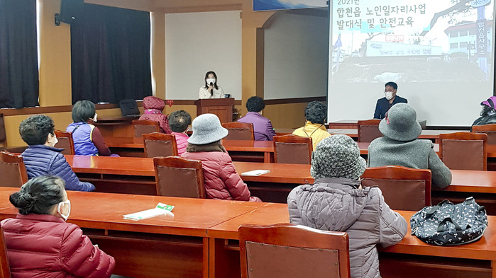 합천군 합천읍(읍장 김해식)은 지난 3일 읍사무소 3층 회의실에서 2021년 합천읍 노인 일자리사업 발대식 및 안전교육을 실시했다.