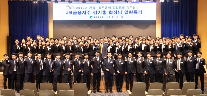 아울러 "신입행원 여러분들이 있기에 JB금융그룹의 미래는 밝다"며 "여러분들의 꿈이 모여 JB금융그룹이 작지만 젊고 강한 ‘강소 금융그룹’으로 성장하는 원동력이 되길 바란다"고 주문했다.