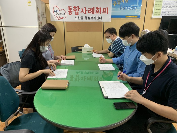 경기 동두천시 보산동행정복지센터는 25일 복지사각지대 위기가구 점검을 위한 사례회의를 개최해 생계·주거 등 복합적인 어려움을 호소하는 복지사각지대 위기가구에 욕구별로 적절한 서비스를 연계해 가구별로 위기상황 해결 방법 등을 논의했다. 사진은 이날 회의가 진행되고 있는 모습. (사진제공=동두천시청)