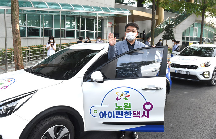 오승록 서울 노원구청장은 11일 ‘노원 아이편한택시’ 시승식에 참석했다. 아이편한택시는 임산부와 24개월 이하 영·유아를 둔 가정이 진료를 위해 지역내 병원 방문시 제공하는 서비스로 평일 오전 9시~오후 5시 이용할 수 있다. 사진은 오 구청장이 아이편한택시 시승식을 하고 있는 모습. (사진제공=노원구청)