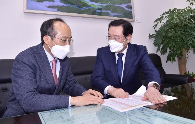 | ▲ 이용섭 광주광역시장이 23일 오후 서울 여의도 국회본관을 방문해 추경호 국민의힘 예결위 간사와 면담을 갖고 주요 현안사업에 대한 국비지원 확대를 요청하고 있다./광주광역시 제공 |