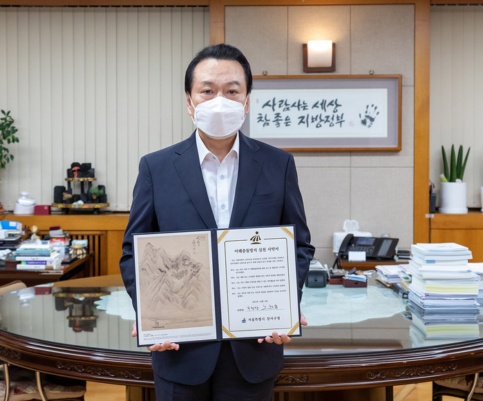노현송 서울 강서구청장이 12일 공직자가 준수해야 할 5가지 실천 사항이 담긴 ‘이해충돌방지 실천 서약서’에 서명하고 ‘청렴 강서’ 실현을 위한 실천의지를 다졌다. 사진은 노 구청장이 서약서를 들어보이고 있는 모습. (사진제공=강서구청)