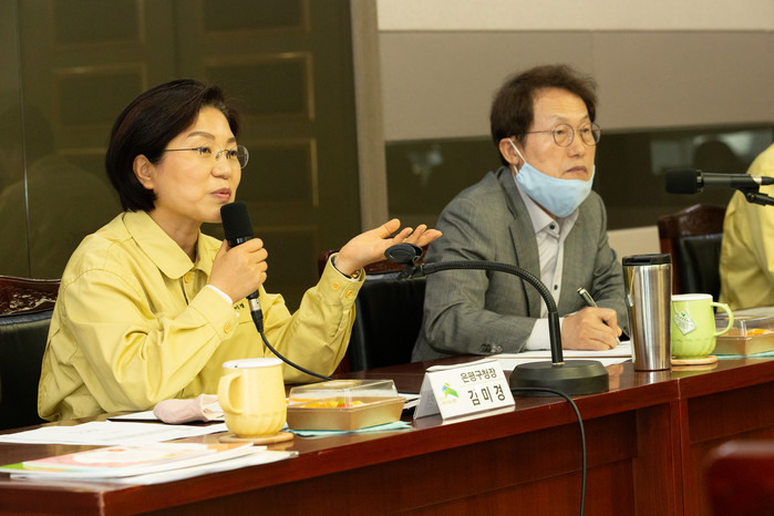 김미경 서울 은평구청장이 최근 조희연 서울시교육감, 서부교육지원청 유재준 교육장, 지역내 특성화고 7개교 및 은평문화예술정보학교의 교장단과 간담회를 열고 특성화고의 미래 교육 발전 방향을 논의했다. 사진은 발언을 하고 있는 김 구청장의 모습. (사진제공=은평구청)