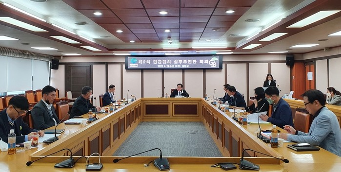 경기 의정부시가 최근 시청 상황실에서 민관협치 활성화 조례 제정을 위한 민관협치 실무추진단 2차 회의를 개최했다. 이날 회의에는 정승우 자치행정국장을 단장으로 민관 합동으로 구성 된 실무 추진단 위원 11명이 참석했다. 사진은 관계자들이 회의하는 모습. (사진제공=의정부시청)