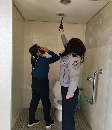 특히 적외선카메라 및 전파탐지기를 이용하여 환풍구, 쓰레기통, 천장과 벽체 구멍 등 의심 위치에 대해 점검을 실시했으며 점검결과 불법카메라 설치 의심 사례는 발견되지 않았다. 또 시설 내 구멍 등 위험요소 발견 시 안전스티커를 부착하는 방법으로 불법카메라를 차단했다.