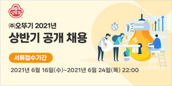 [시민일보 = 여영준 기자] 주식회사 오뚜기는 2021년 상반기 공개채용을 진행한다고 밝혔다.