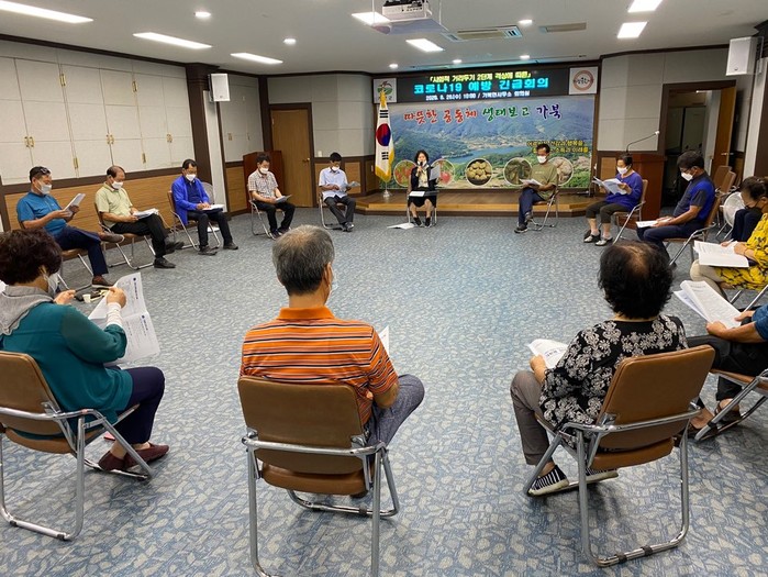 거창군 가북면(면장 이정희)은 사회적거리두기가 2단계로 상향 조정됨에 따라 코로나19 대응을 위해 26일 마을이장들이 모여 면사무소 회의실에서 대책회의를 가졌다.