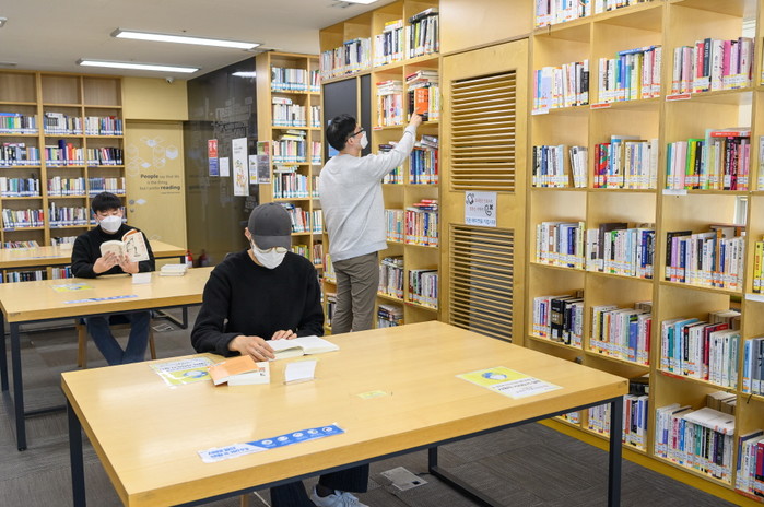 서울 양천구가 수도권방역조치사항의 조정에 따라 구립도서관 8곳의 운영을 재개한다고 21일 밝혔다. 사진은 양천구 도서관을 찾은 시민들.