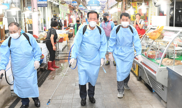 이와 함께 구인모 군수는 15일 시장번영회와 새마을협의회 등 20여 명과 함께 거창전통시장 전역을 방역 활동을 통해 코로나19 차단에 대한 강한 의지를 표출했다.