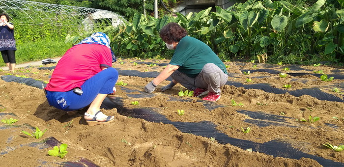 경기 하남시 춘궁동 새마을협의회·부녀회는 최근 춘궁동 소재 한 농장에서 ‘사랑의 김장나누기’에 사용될 배추 및 무 모종을 심었다. 이날 심은 500여포기 모종은 오는 11월 수확해 김장을 담가 지역내 홀몸노인과 저소득가정 등에 전달할 계획이다. 사진은 이날 봉사자들이 배추·무 모종을 심고 있는 모습. (사진제공=하남시청)