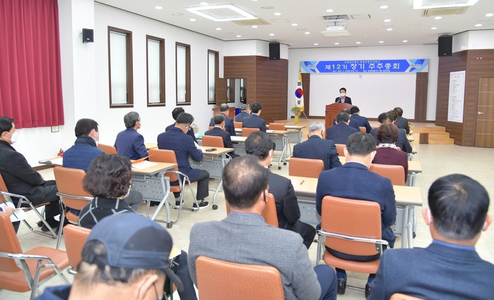 농업회사법인 합천유통(주)(대표이사 장문철)은 지난 25일 합천유통 대회의실에서 문준희 합천군수, 배몽희 합천군의회의장, 김윤철 경상남도의원, 신재순 농업기술센터소장, 관계기관 및 사회단체장, 주주 등 30여명이 참석한 가운데 코로나19 예방수칙을 준수하여 제12기 정기 주주총회를 개최했다.